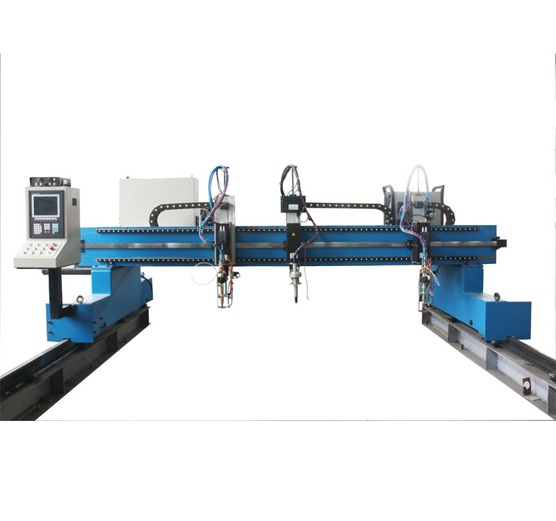 该型数控坡口切割机为龙门式结构,横向跨度有3m、4m、5m、6m、8m等多种规格,均采用双边驱动,双轴芯直线导轨,标配为横向轨距4m,有效切割范围:3.2m,纵向轨长可定制,单火焰或单等离子坡口切割方式,带自动点火;也可增配成火焰与等离子两用坡口切割方式。纵向导轨长度每节2m,可按用户要求配置加长导轨及加宽横梁跨距;还可根据用户要求配置多把割炬。